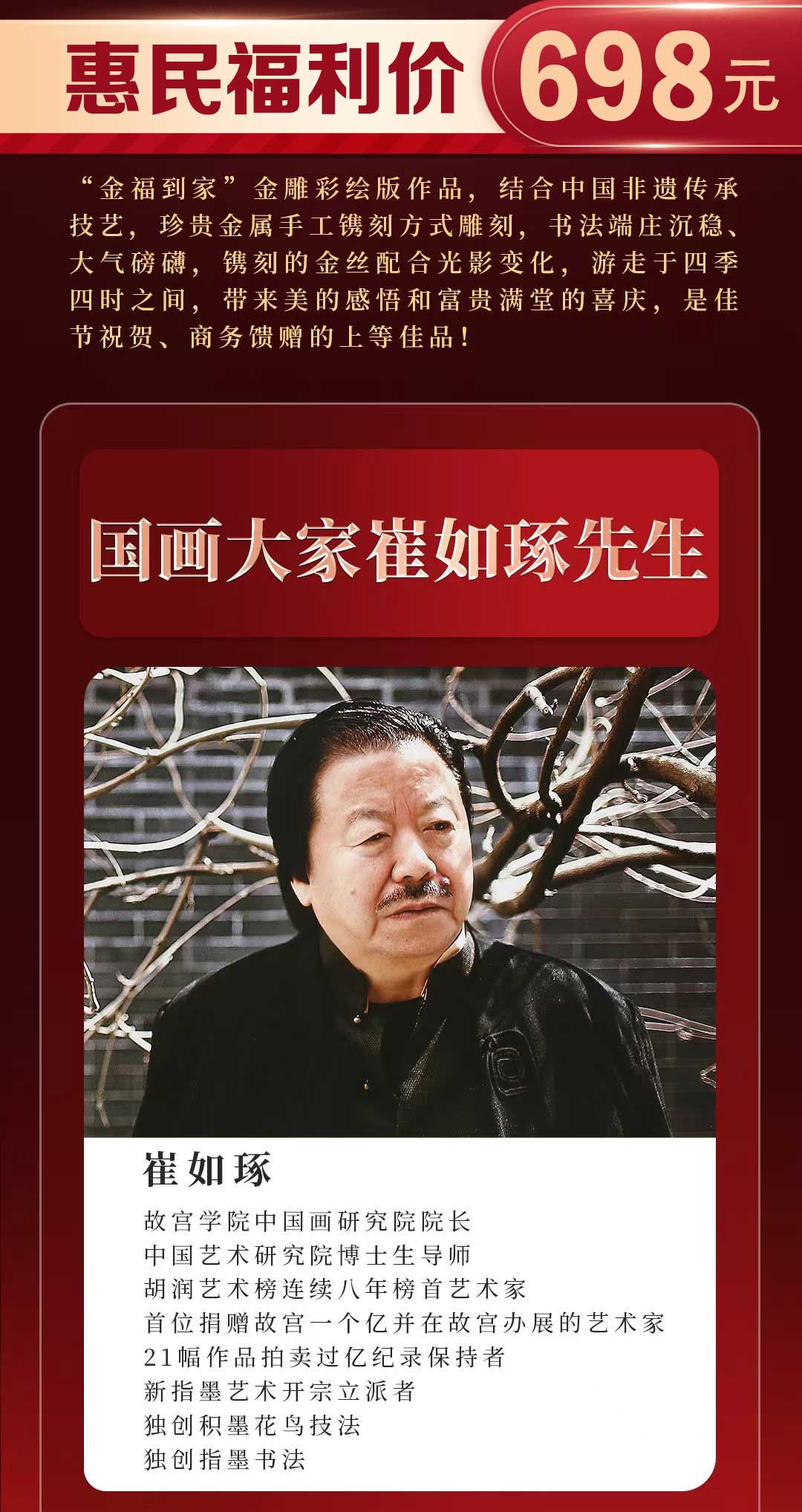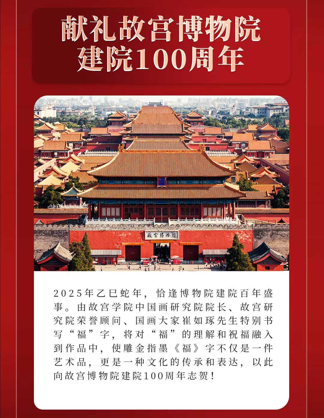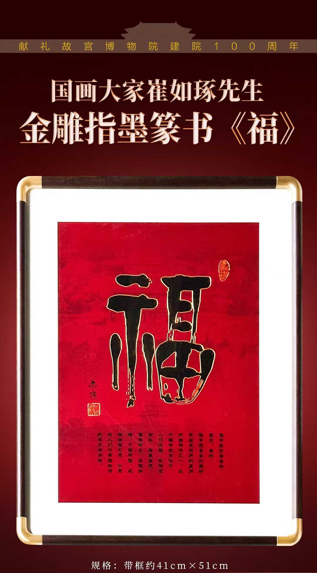 • 献礼故宫博物院100周年,国画大家崔如琢先生金雕指墨篆书《福》惠民抢藏698元/幅