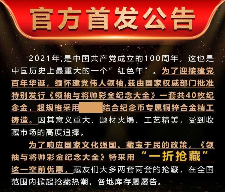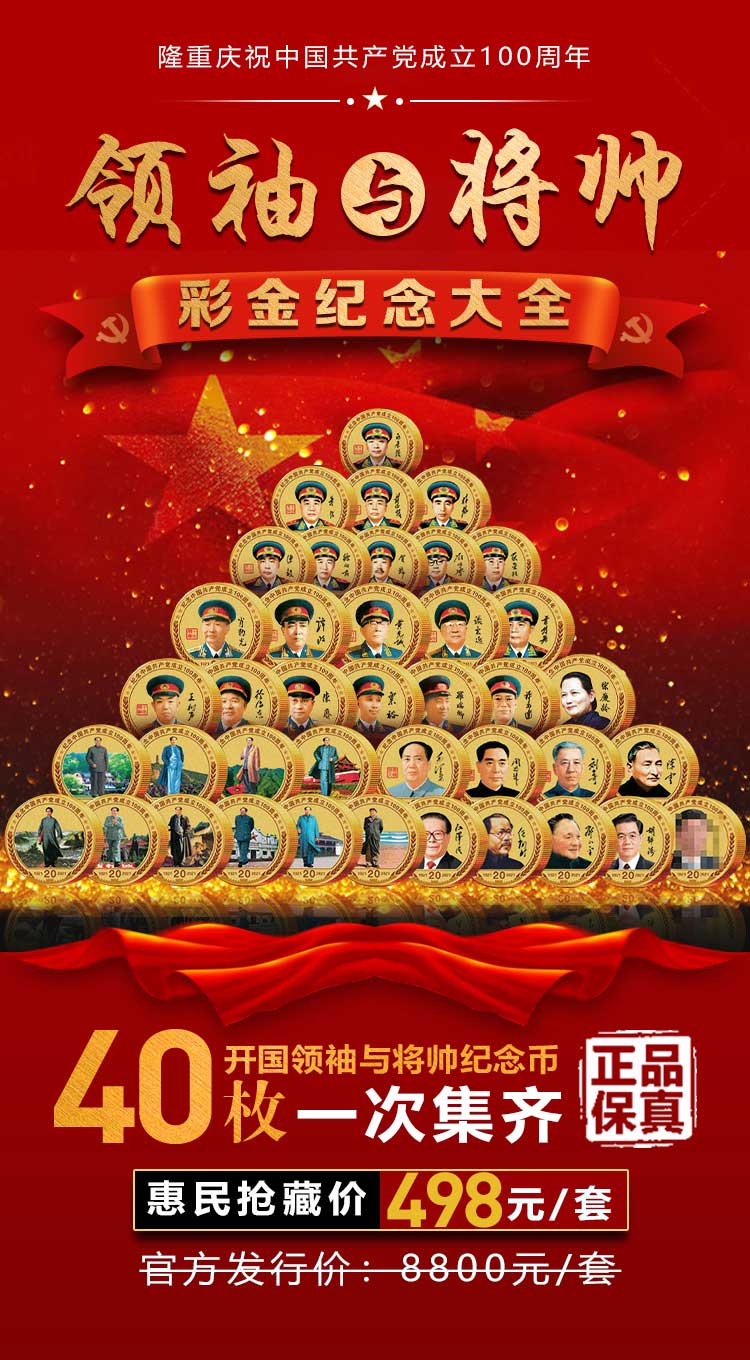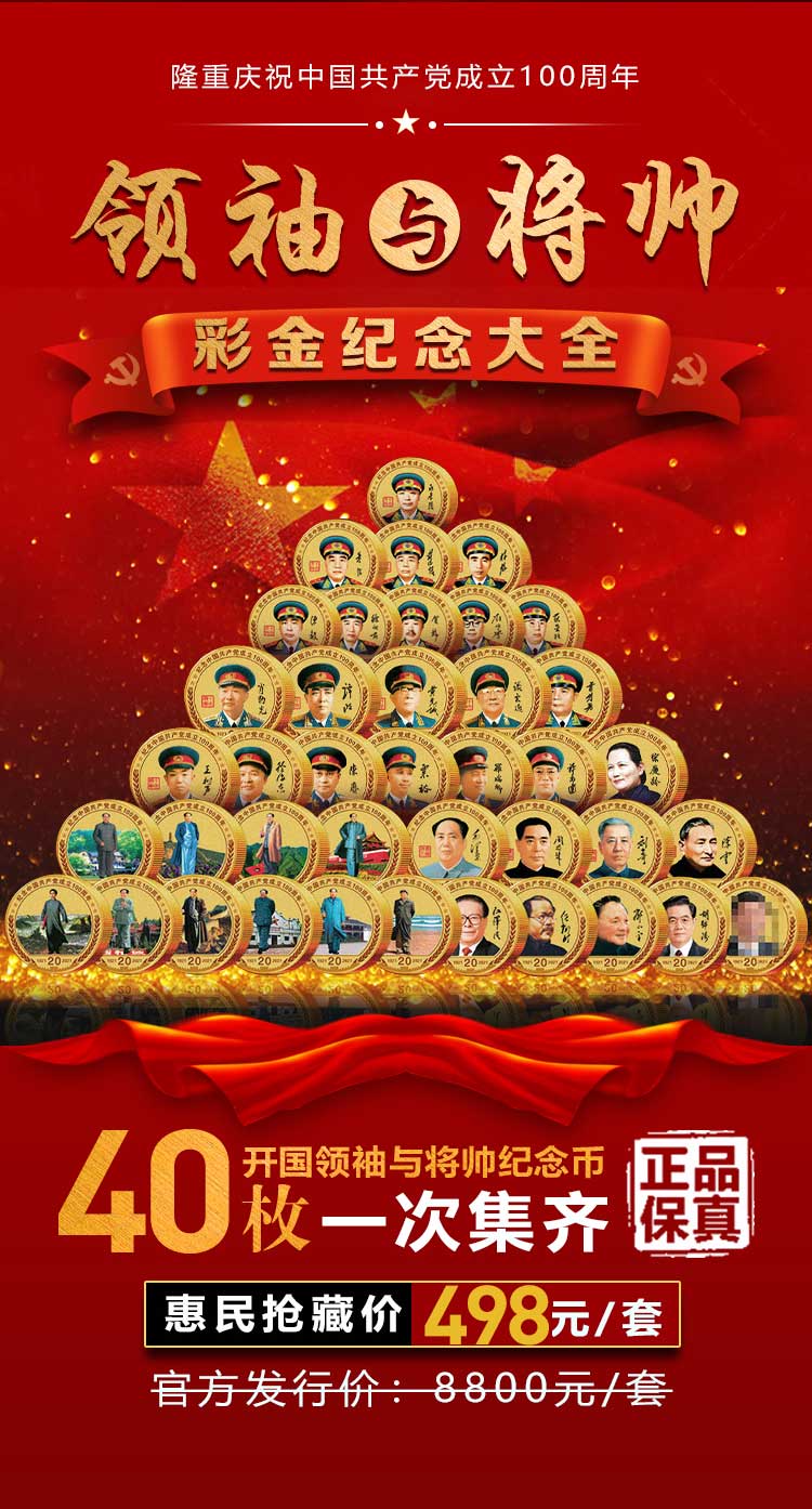 • [领袖与将帅元,首彩金纪念大全]国家权威部门批准特别发行,支持鉴定,假一赔+!(原价8800元,现秒杀498元/套),全套40枚一次集齐!