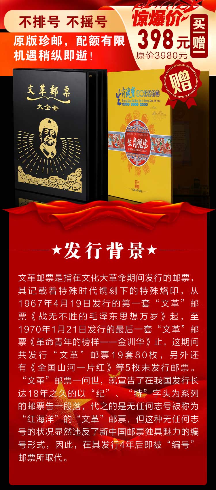 [文革邮票大全套]国家权威部门批准特别发行,支持鉴定,假一赔+!(原价3980元,现一折抢藏398元/套买一赠一)十分稀缺,两套796元!限时抢购!!